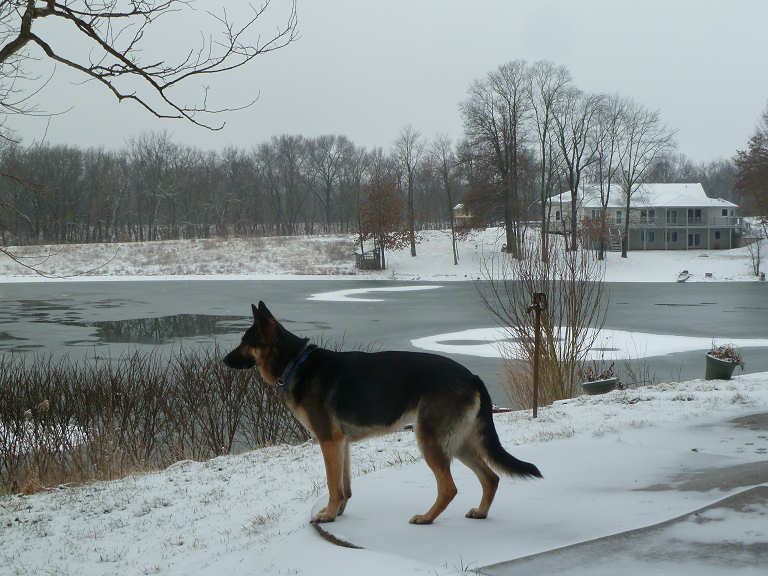 As we reached Joan and Tim's dam the dogs alerted us to what they considered a great find. There was blood and feathers down by the retain-age pond. Perhaps a coyote was able to kill a goose.
